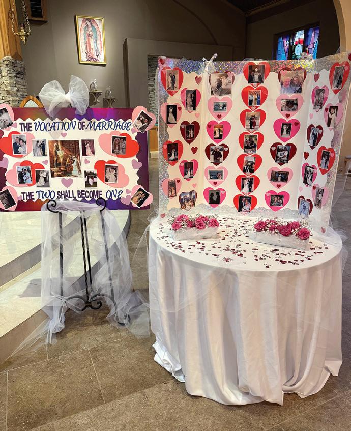 The vocation ministry in St. Thomas the Apostle Church, Old Bridge, celebrated World Marriage Day with a photo display of couples in the parish placed near the altar. At each Mass, couples were asked to stand and repeat their wedding vows. A special blessing was administered to each couple. Parishioners were greeted at the church entrance with a thoughful display of pictures colored by young parishioners. The observances of National Marriage Week (Feb. 7-14) and World Marriage Day (Sunday, Feb. 9) were an opportunity to focus on building a culture of life and love that begins with supporting and promoting marriage and the family. —Courtesy photos