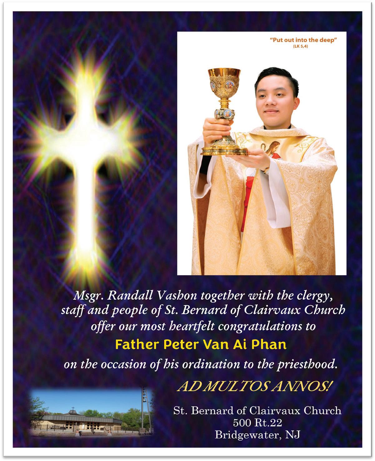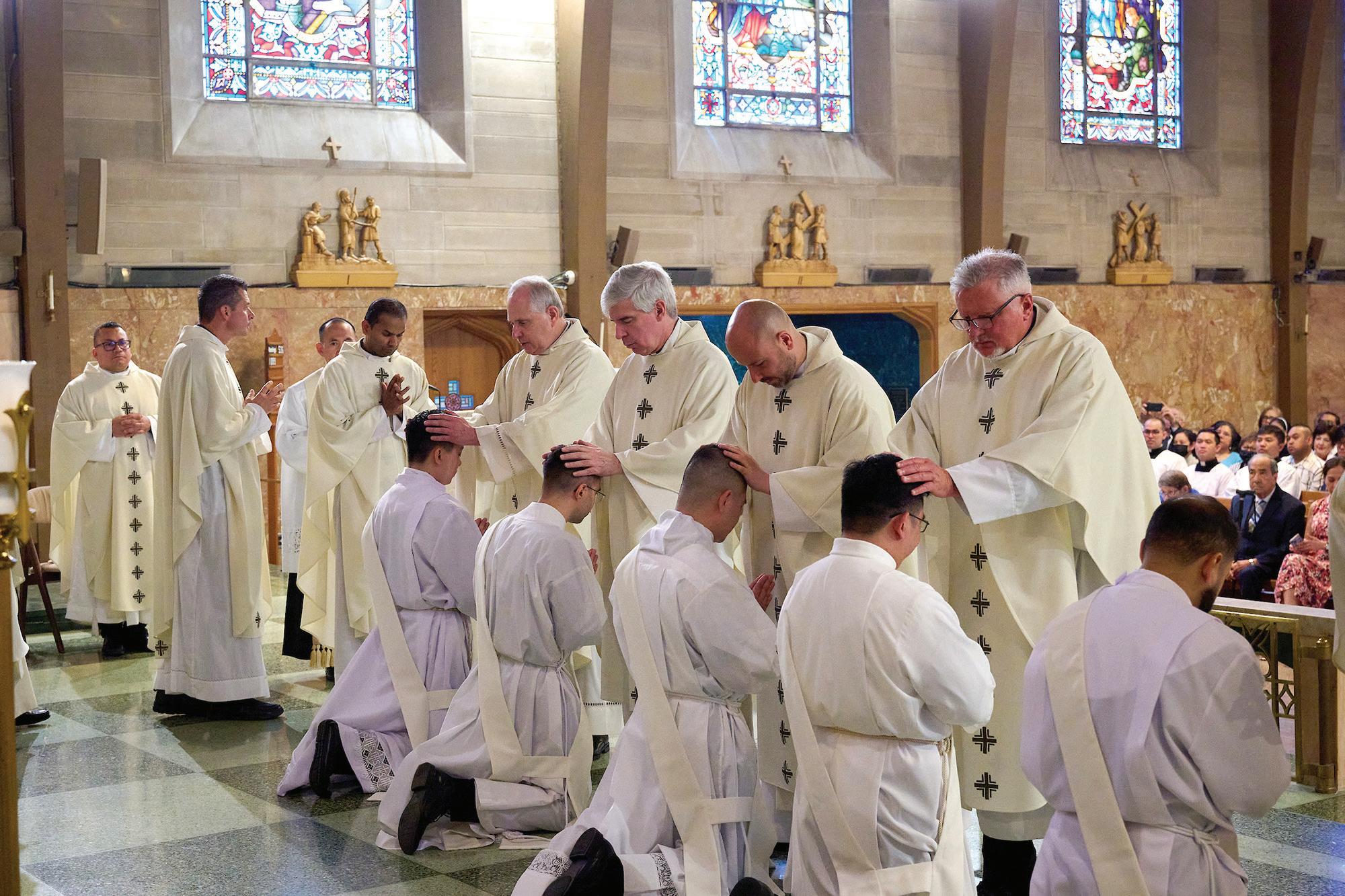 The breadth and depth of the rich cultural makeup of the Diocese of Metuchen was clearly evident June 8, in the Cathedral of St. Francis of Assisi, as Bishop James F. Checchio ordained five men to the priesthood. The new priests – two from Vietnam, one from the Philippines, one from Costa Rica and one from Poland – were welcomed and supported