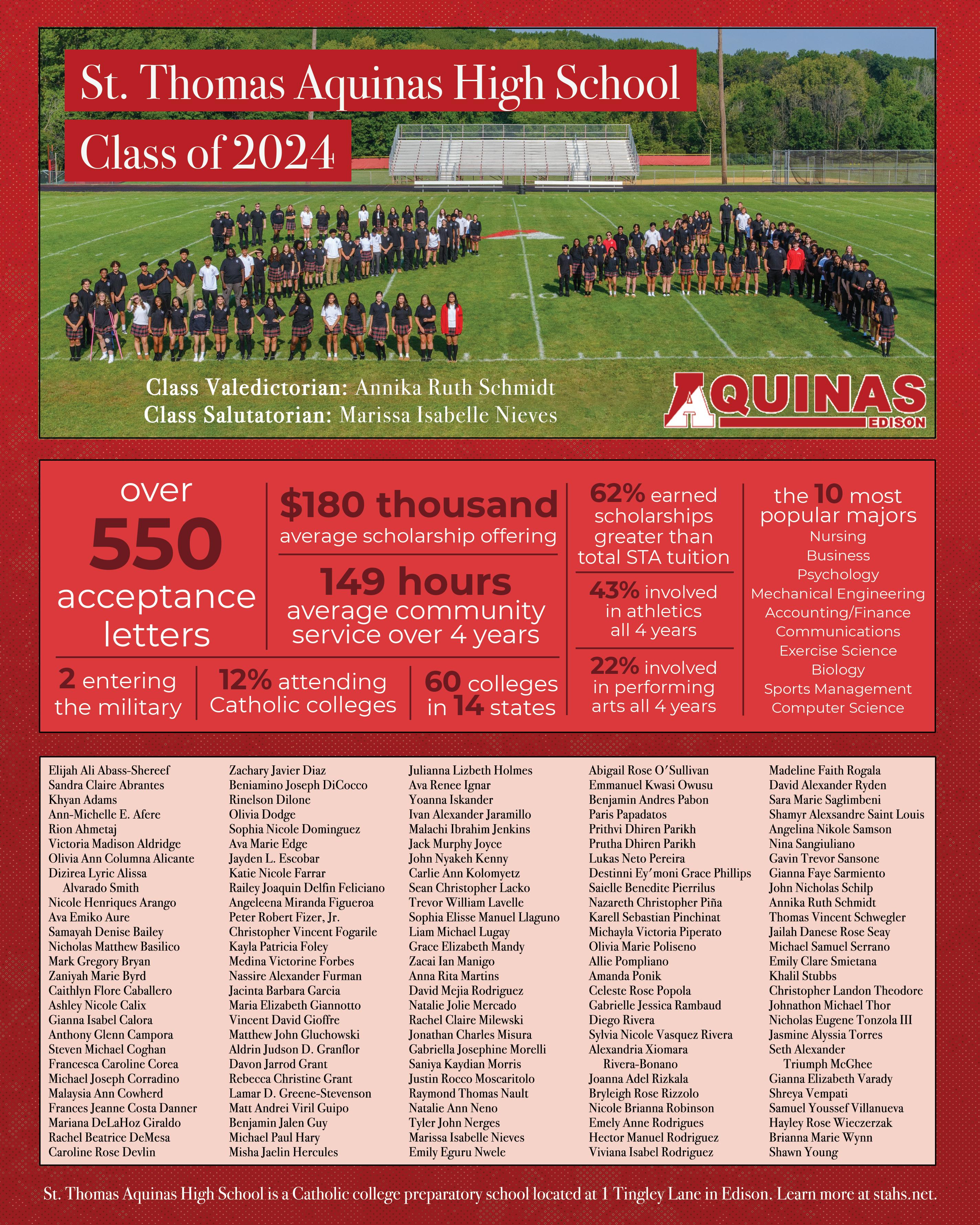 JUNE 20, 2024 THE CATHOLIC SPIRIT OUR DIOCESE 60 Congratulations Catholic School Graduates Class of 2024 Go in peace to love and serve the Lord! Office of Schools | Diocese of Metuchen 732-562-2446 | diometuchen.org/schools