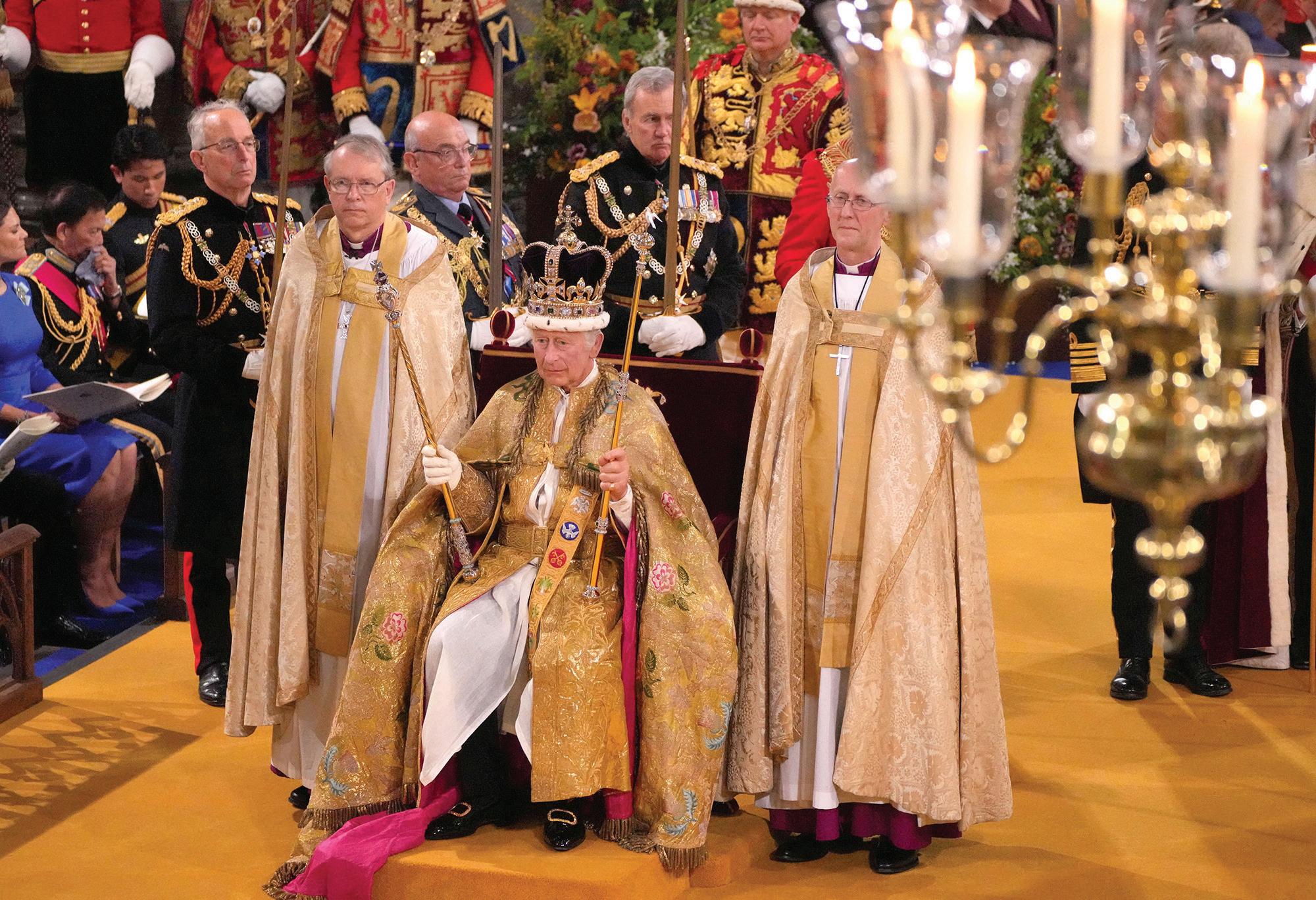 Catholic bishops invited to coronation described as testament to ‘incredible journey of reconciliation’King Charles III sits on the throne after being crowned with St. Edward’s Crown by Archbishop Justin Welby of Canterbury during his coronation ceremony at Westminster Abbey, London. — OSV News photo/Aaron Chown, Reuters
