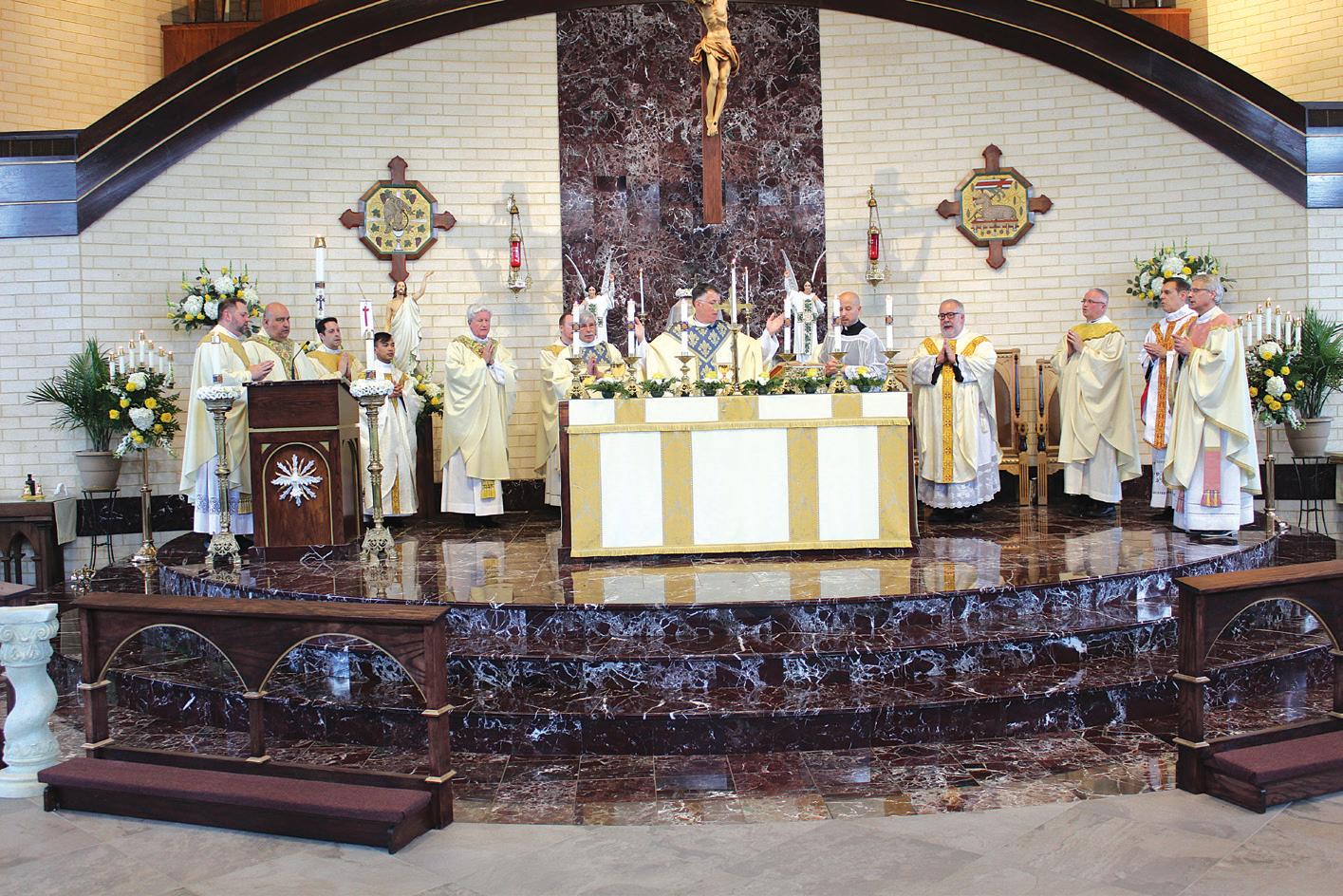 Father Christy, rector of the Ca thedral, presided at the liturgy and gave the homily. Concelebrants were pastors with parochial schools, as well as priests who minister as instructors in Catholic high schools.