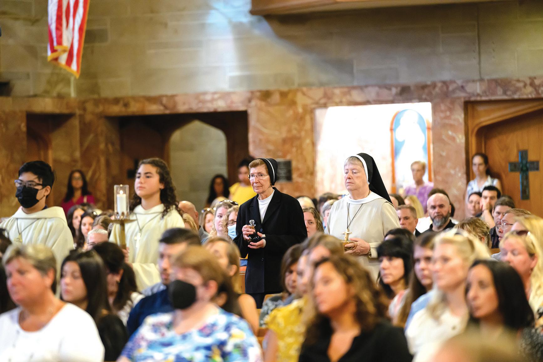 Teachers joyfully greeted their counterparts from other schools, see ing some for the first time since the onset of the COVID-19 shutdown, and listened intently as Father Christy’s homily served as a rallying cry for the benefits of Catholic education.