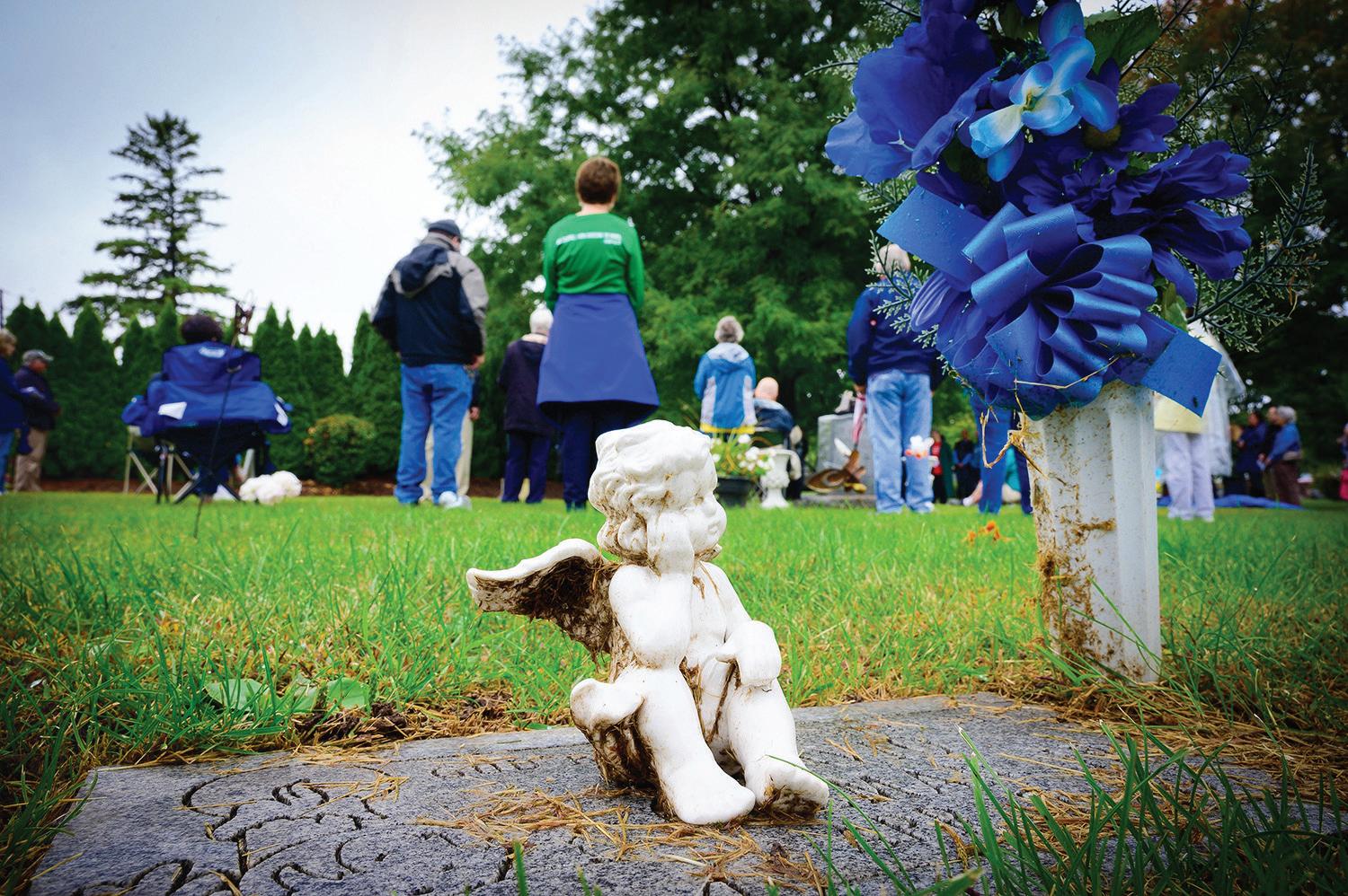 People gather for the National Day of Remembrance for Aborted Children Sept. 12, 2020, at Allouez Catholic Cemetery in Allouez, Wis. During the hourlong outdoor event, participants listened to speakers, recited the Rosary and prayed the Divine Mercy Chaplet.