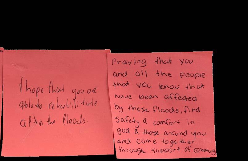 TO THOSE AFFECTED BY THE FLOODS, I AM VERY SORRY ABOUT THE DAMAGE CAUSED BY THE FLOODWATERS TO YOUR SCHOOL, HOME AND COMMUNITY. THOUGH THINGS ARE DIFFICULT RIGHT NOW, DO NOT LOSE HOPE. MAKE SURE YOU FOCUS ON TAKING CARE OF YOURSELF AND YOUR LOVED ONES. – LUCY