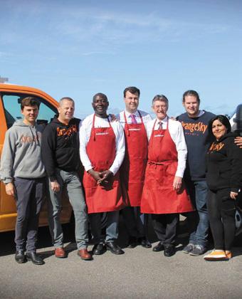 Steve Middleton, John Sandy, Sean Scanlon, Barry Urwin, Lucas Patchett and Maz Dargan at the launch of Orange Sky Laundry’s Hunter service. See page 10. Photo courtesy of Kate Bennett.
