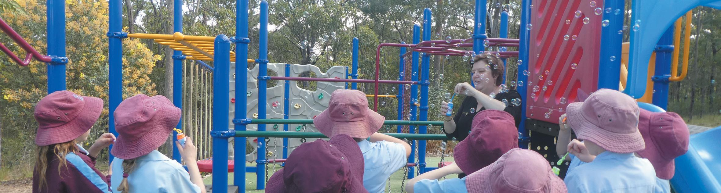 Jo Williams and students bubbling along at St Joseph’s, Kilaben Bay!