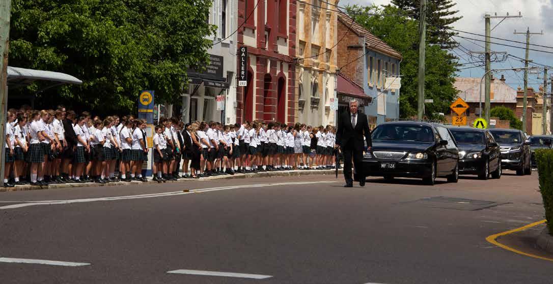 Following the Funeral Mass and onsite wake, staff formed a guard of honour along Hunter Street to farewell the cortege. It then travelled from Newcastle to St John's Oratory in Maitland, where it was met by a second guard of honour formed by 200 students from All Saints’ College and St John’s Primary School.