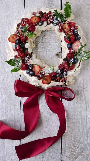 f Place the cream on top and decorate with fresh berries. You may choose to use other fruit, but the berries are seasonal and look nice and festive.