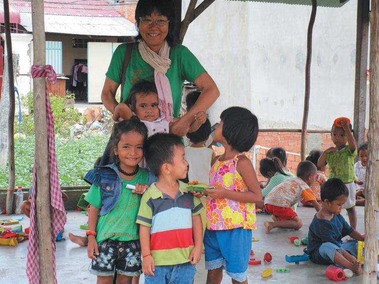 Last November I visited the poor Steung Meanchey district of Phnom Penh, Cambodia, where Japanese missionary, Asano Miyuki, has helped establish projects which have greatly benefited residents. One is called Home for Children, a school for early primary age children. The classrooms are covered cement slabs in a rented field! About 80 children enjoy the free lessons and a nutritious lunch. The school, and also a crèche, enable parents to find work − often seeking saleable items at the city dump.