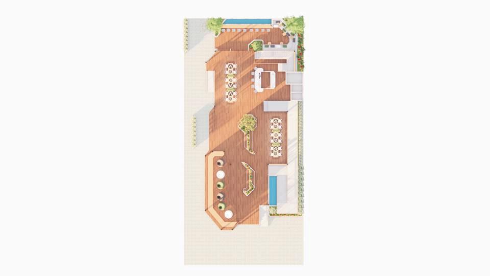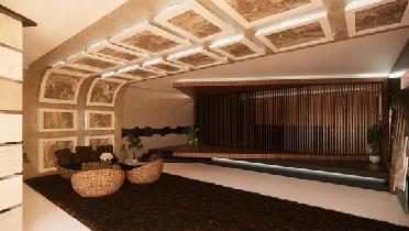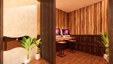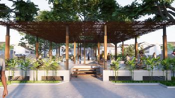 Ruang publik yang terbuka bagi semua kalangan masyarakat ini memiliki desain kontemporer denga perpaduan material kayu, rotan, batu dan baja didalamnya.
