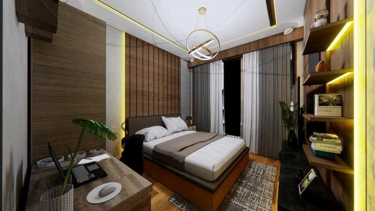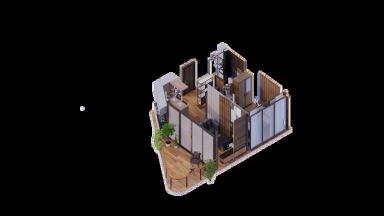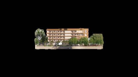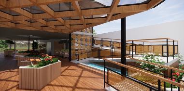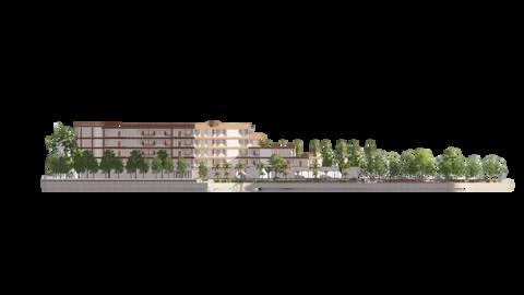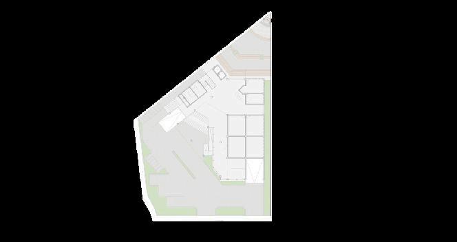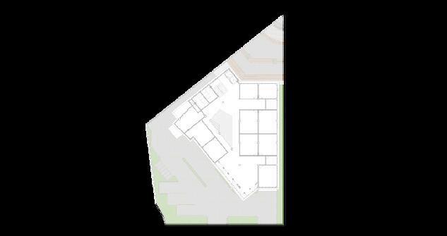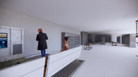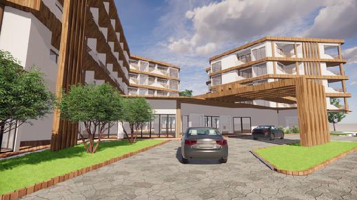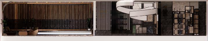substraktif massa pada bagian depan bangunan uuntuk dibentuk menjadi 1 lantai yang digunakan sebagai bangunan dan ruang pendukung apartemen