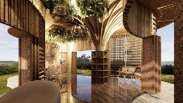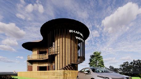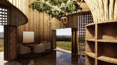 Bangunanperpustakaaninimemilikinuansatropisdenganmemadukanbeberapamateriallokaldidalamnyasepertibau,bambu,kayu dan rotan. Dengan mengusung konsep yang berkelanjutan serta ramah terhadap lingkungan dan pengunjung, bangunan ini dibuat senyamanmungkinbagipengunjungyangdatang