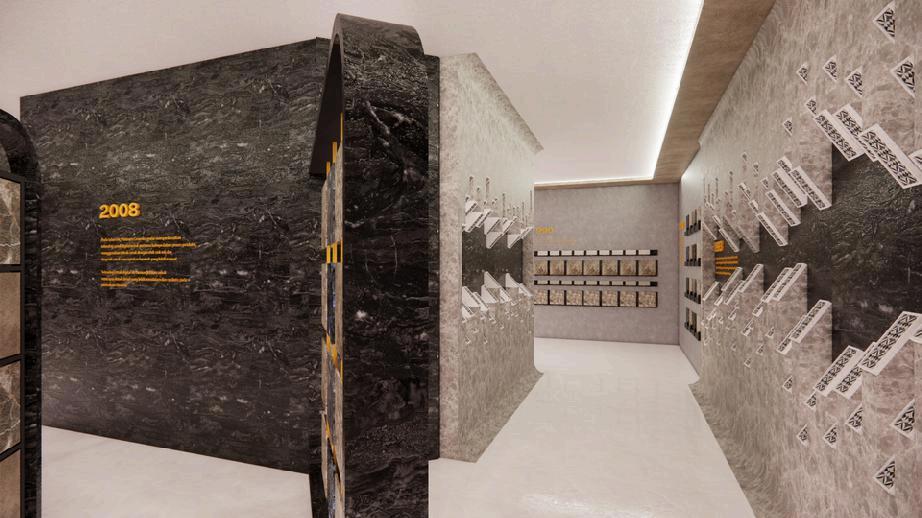 RUANGAN 2: ruangan yang kedua ini merup lanjutandari ruangan yang pertama. Berbeda de ruang yang pertama, ruangan ini seluruhnya digun sebagai tempat pamer keramik. Alur pada ruanga dibua berkelok sebaga bentuk representasi ko “Vestigium Kramos” yang artinya perjalanan keramik