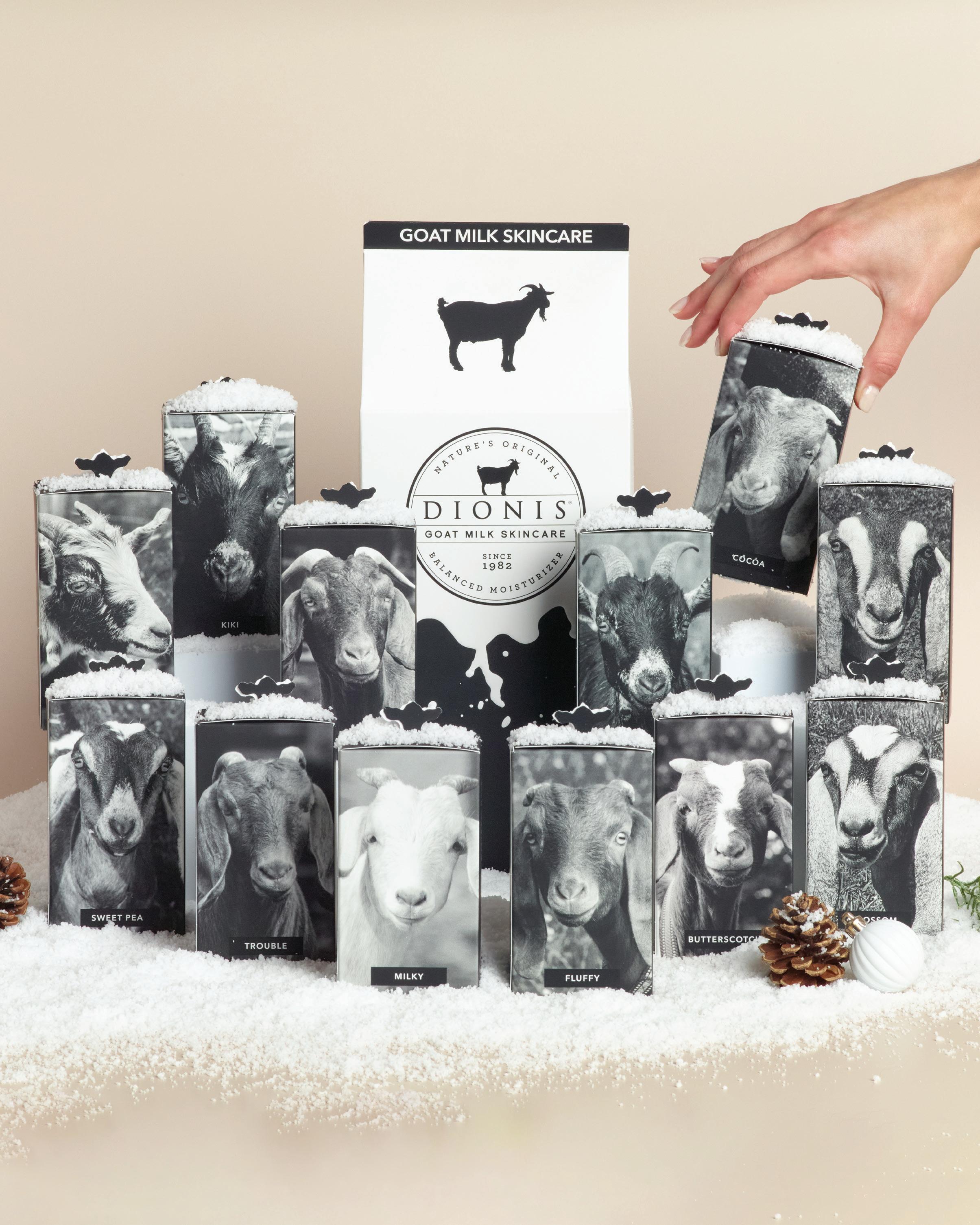 Our milk carton offers a curated assortment of our highquality goat milk skincare. Each box is beautifully decorated highlighting one of our goats and inside a beauty treat awaits. This is the best gift choice or for you to indulge in self-care during the holiday season.