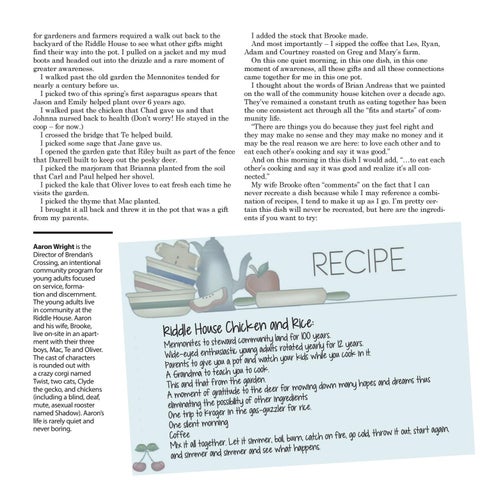 rd commun s. Mennonites to stewa d yearly for 12 year young adults rotate tic ias us th it. en d in ye ok -e Wide you co tch your kids while wa d an t po a u yo e Parents to giv h you to cook. A Grandma to teac eams thus the garden. many hopes and dr This and that from wn do ing ow m r fo de to the deer A moment of gratitu dients bility of other ingre eliminating the possi for rice. in the gas-guzzler One trip to Kroger One silent morning rt again, cold, throw it out, sta go e, fir Coffee on h tc ca , t it simmer, boil, burn Mix it all together. Le happens. mer and see what and simmer and sim