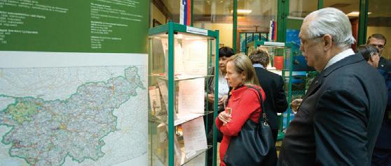 The Ambassador of the Republic of Slovenia, Ksenija Škrilec and Deputy Minister of Foreign Affairs and Trade, László Szabó welcomed guests in the Entrance Hall of the Ministry of Foreign Affairs and Trade in Budapest for the exhibition commemorating the 25th anniversary of the recognition of the Republic of Slovenia and the establishment of diplomatic relations.