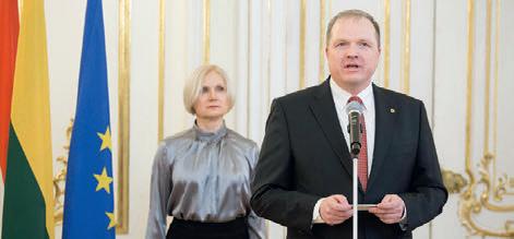 To celebrate the National Day of the Republic of Lithuania and the 30th anniversary of the restoration of the country’s independence, the Ambassador of the Republic of Lithuania, Vytautas Pinkus held a reception for fellow members of the diplomatic community and other guests in the Wenckheim Palace (currently the Ervin Szabó Library) in Budapest. Special entertainment was a skrabalai (a Lithuanian folk tuned percussion instrument consisting of trapezoid-shaped wooden bells) performance by Lithuanian artist Regimantas Šilinskas.