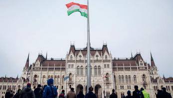 Due to the new coronavirus epidemic, the flag-raising ceremony in front of Parliament was the only on-thespot event on this year’s national holiday schedule, the Day of Remembrance of the Revolution and War of Independence of 1848-49.