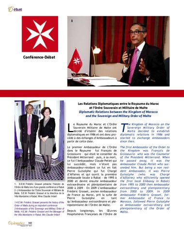 1- S.E.M. Frédéric Grasset présente l’histoire de l’Ordre de Malte lors d’une grande conférence à Rabat 2- L’Ambassadeur de l’Ordre Souverain et Militaire de Malte, S.E.M. Frédéric Grasset et la directrice de la Villa Mandarine à Rabat, Mme Claudie Imbert 1-H.E.Mr. Frédéric Grasset presents the history of the Order of Malta during an important conference 2-Ambassador of the Sovereign and Military Order of Malta, H.E.Mr. Frédéric Grasset and the Manager of the Villa Mandarine in Rabat, Mrs Claudie Imbert 102 Numéro 39 - 2011