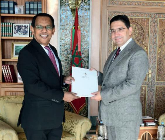 MFA Nasser Bourita received, Friday, November 14 in Rabat, Mr. Sisira Senavirathne who presented the figured copies of his credentials as Ambassador Extraordinary and Plenipotentiary of Sri Lanka with residency in Cairo to His Majesty King Mohammed VI, may God assist Him