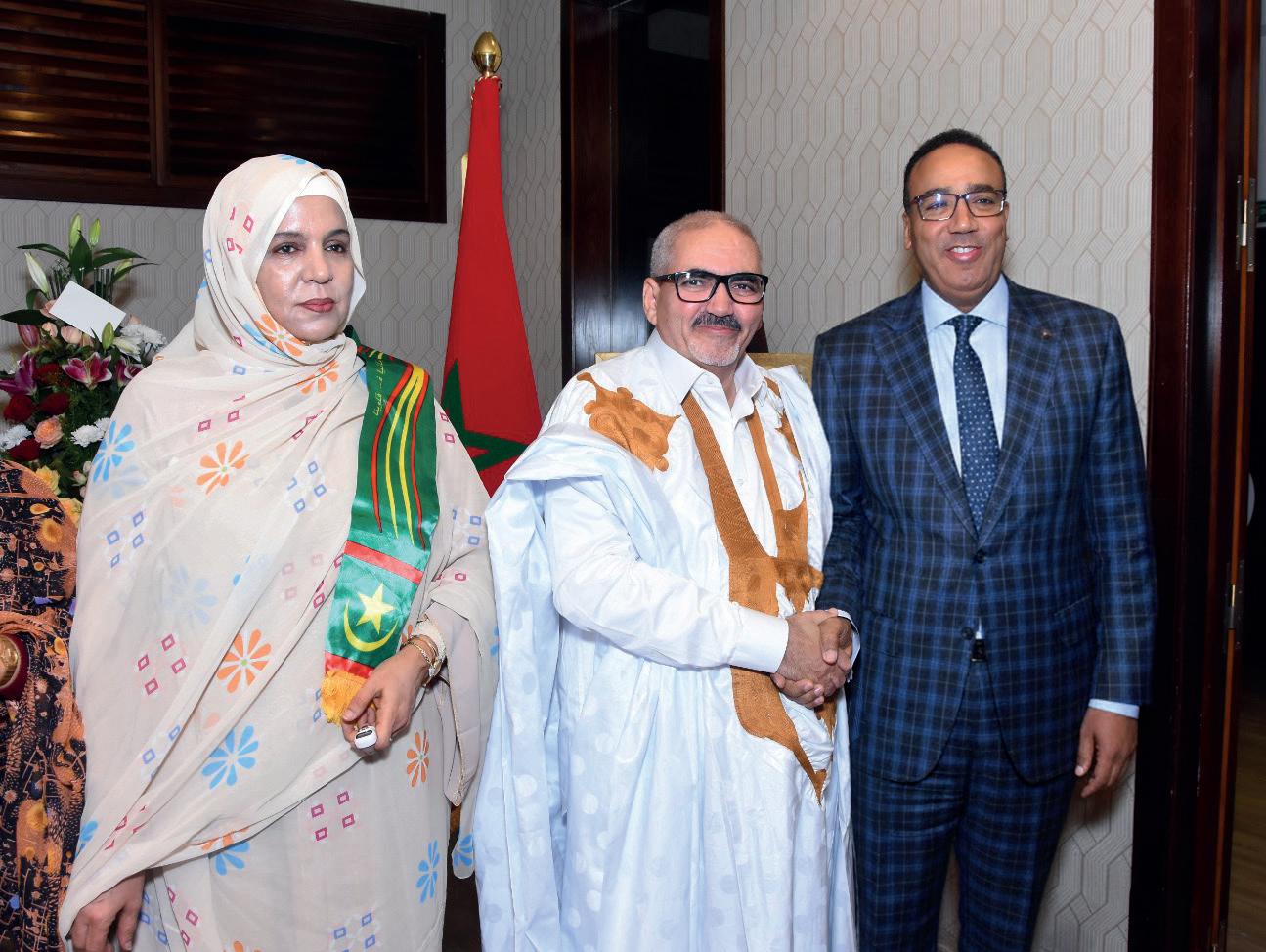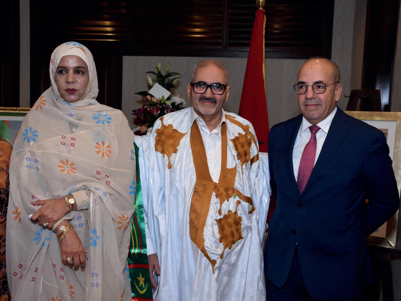 L'Ambassadeur de Mauritanie et la Consule Générale de la Mauritanie à Casablanca. reçoivent le représentant du gouvenement marocain, M. Ahmed El Bouari, Ministre de l’Agriculture, de la Pêche maritime, du Développement rural et des Eaux et Forêts qui a donné un discours à cette occasion