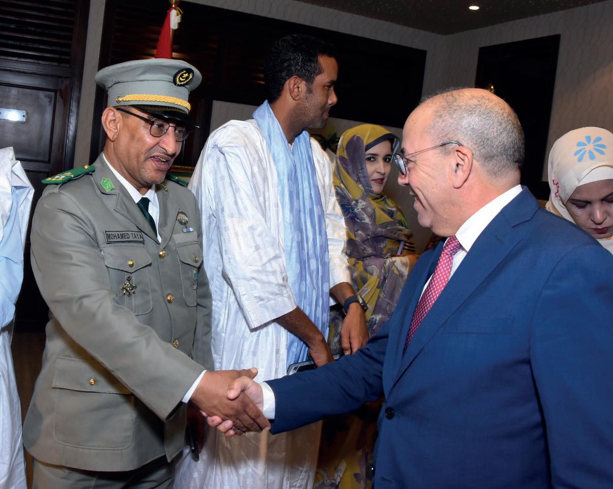 The Deputy Military Attaché at the Embassy of Mauritania in Rabat, Lieutenant Colonel Mohamed El Kory Ould Taya, welcomes Mr. Ahmed El Bouari, Minister of Agriculture, Maritime Fisheries, Rural Development, and Water and Forests