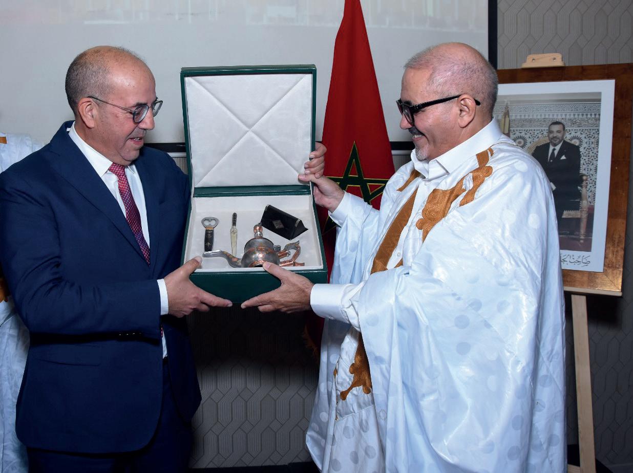 The Ambassador of Mauritania and the Consul General of Mauritania in Casablanca receive the representative of the Moroccan Government, Mr. Ahmed El Bouari, Minister of Agriculture, Maritime Fisheries, Rural Development and Water and Forests, who delivered a speech on this occasion