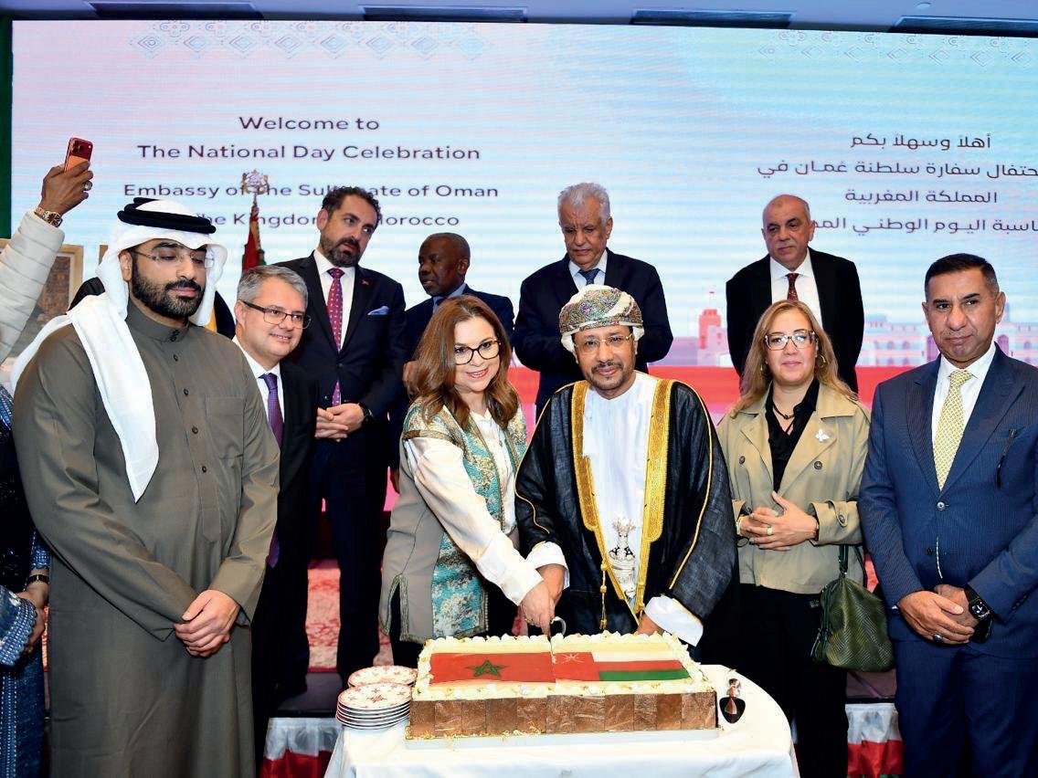 The traditional birthday cake was jointly cut by Minister Naima Ben Yahya and the Ambassador of Oman