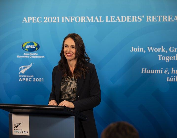 Shown here is the informal leaders’ retreat, hosted by New Zealand in July. The APEC Economic Leaders’ Meeting will take place virtually, the week of Nov. 8.