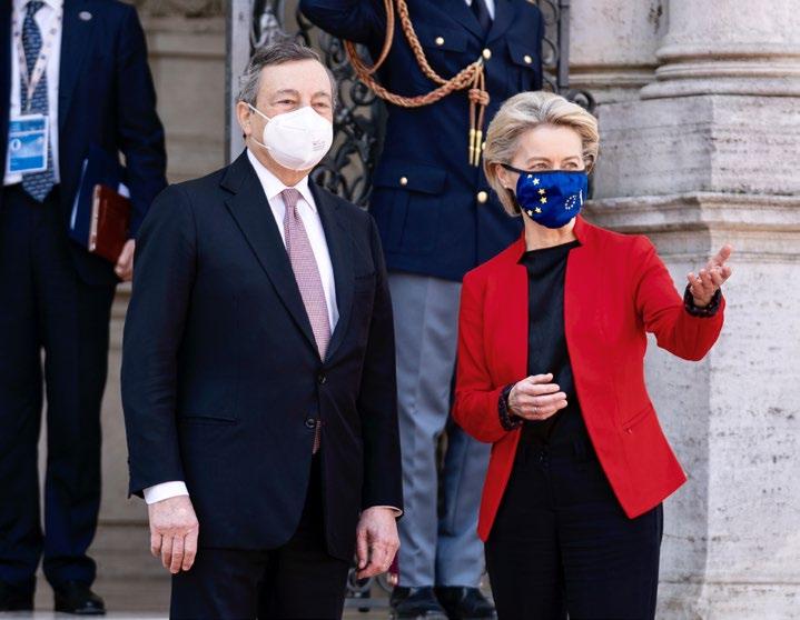 Italy and the European Union co-hosted the G20 Global Health Summit in the leadup to the G20 in Rome in October. Shown here are Italian Prime Minister Mario Draghi and EU Commission President Ursula von der Leyen. This year's G20 will focus on post-pandemic economic recovery.