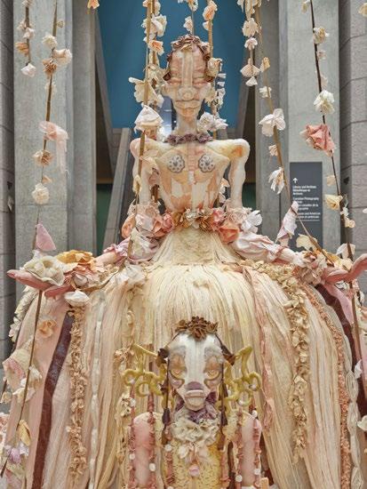 Symphony, by the Brooklyn-based Canadian-Jamaican artist Tau Lewis, is a new addition to the gallery’s Contemporary Projects series . It’s part of Lewis’s ongoing work known as T .A .U .B .I .S ., or the Triumphant Alliance of the Ubiquitous Blossoms of Incarnate Souls . Symphony is the sovereign of T .A .U .B .I .S ., and she is built of many flowers, each one containing a soul that has been inducted into the alliance,