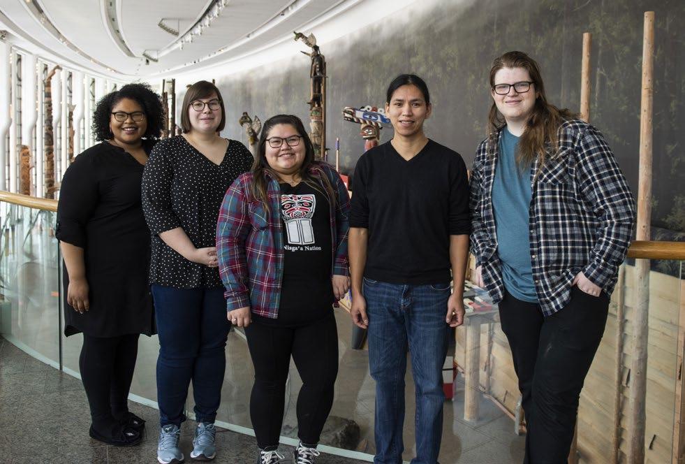 RBC Indigenous Internship Program co-ordinator Gaëlle Mollen, left, at the Canadian Museum of History, with interns Sarah Monnier, Kaitlyn Stephens, Shaun Canute and Skylar-James Wall. Their display, titled Rekindled — Tradition, Modernity and Transformation in Indigenous Cultures, invites you to “witness the sparks currently reigniting the flames of our cultures.”
