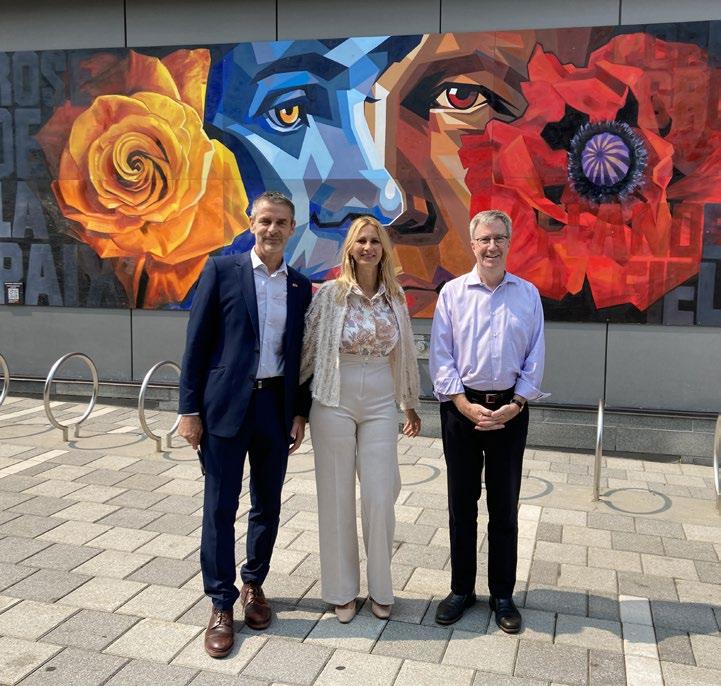1. The Embassy of the Philippines organized a vernissage for Perspectives and Experimentation in Visual Arts featuring artworks by Alan Deniega, minister and consul-general; Jeffrey Salik, first secretary and consul; and Maria Teresa Narbuada. Here, Jeffrey Salik stands in front of his paintings. (Photo: Ülle Baum) 2. During the 2021 Korean Week in Canada, the Embassy of Korea and the Korean Culture Centre organized an outdoor concert at Lansdowne Casino Lac-Leamy Plaza featuring a string quartet and a traditional Korean musical performance. Here, Hyunyoung Roa Lee plays a gayageum, a Korean zither with 12 strings. (Photo: Ülle Baum) 3. The Belgian Embassy hosted an official unveiling of the mural Peace Flowers by Belgian artist Tom Cech, a gift from Belgium to the City of Ottawa. From left: Johan Verkammen, then-Belgian ambassador, his wife Kathleen Billen and Ottawa Mayor Jim Watson. (Photo: Ülle Baum) 4. The Lithuanian Embassy hosted an event marking the restoration of Lithuanian-Canadian diplomatic relations at the Auditorium of the National Gallery of Canada. Mantas Adomenas, Lithuania’s deputy minister of foreign affairs, spoke. (Photo: Ülle Baum) 5. To mark the national day and Korean Armed Forces Day, Ambassador Chang Keung Ryong and his wife, Suh Yong Suk, hosted a reception at the Westin Hotel's Venue Twenty Two. (Photo: Ülle Baum) 6. To mark the day of German unity and to look back on Angela Merkel's 16 years of leadership, the German Embassy, with the Munk School, presented a webinar. Ambassador Sabine Sparwasser delivered opening remarks. (Photo: Ülle Baum)