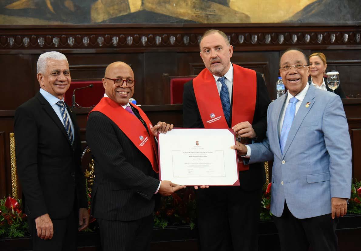Rodrigo Arias, presidente de la Asamblea Legislativa de Costa Rica y actual presidente Pro Tempore del Foro de Presidentes y Presidentas de Poderes Legislativos de Centroamérica y la Cuenca del Caribe (FOPREL), otorgó a Alfredo Pacheco, presidente de la Cámara de Diputados, la «Orden Santos René Núñez Téllez», en el grado de Gran Cruz Dorada, en el marco de la «XLII Reunión Ordinaria del Foro de Presidentes de Poderes Legislativos.