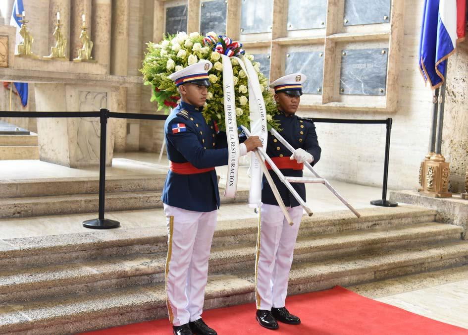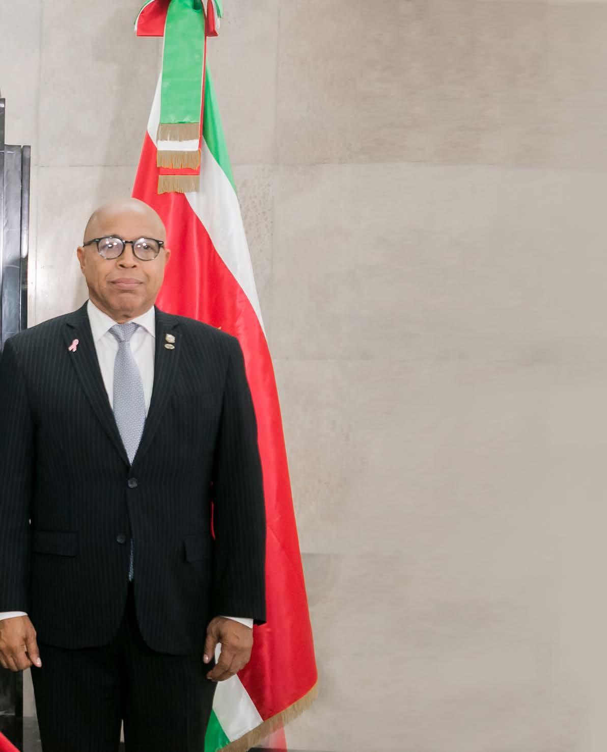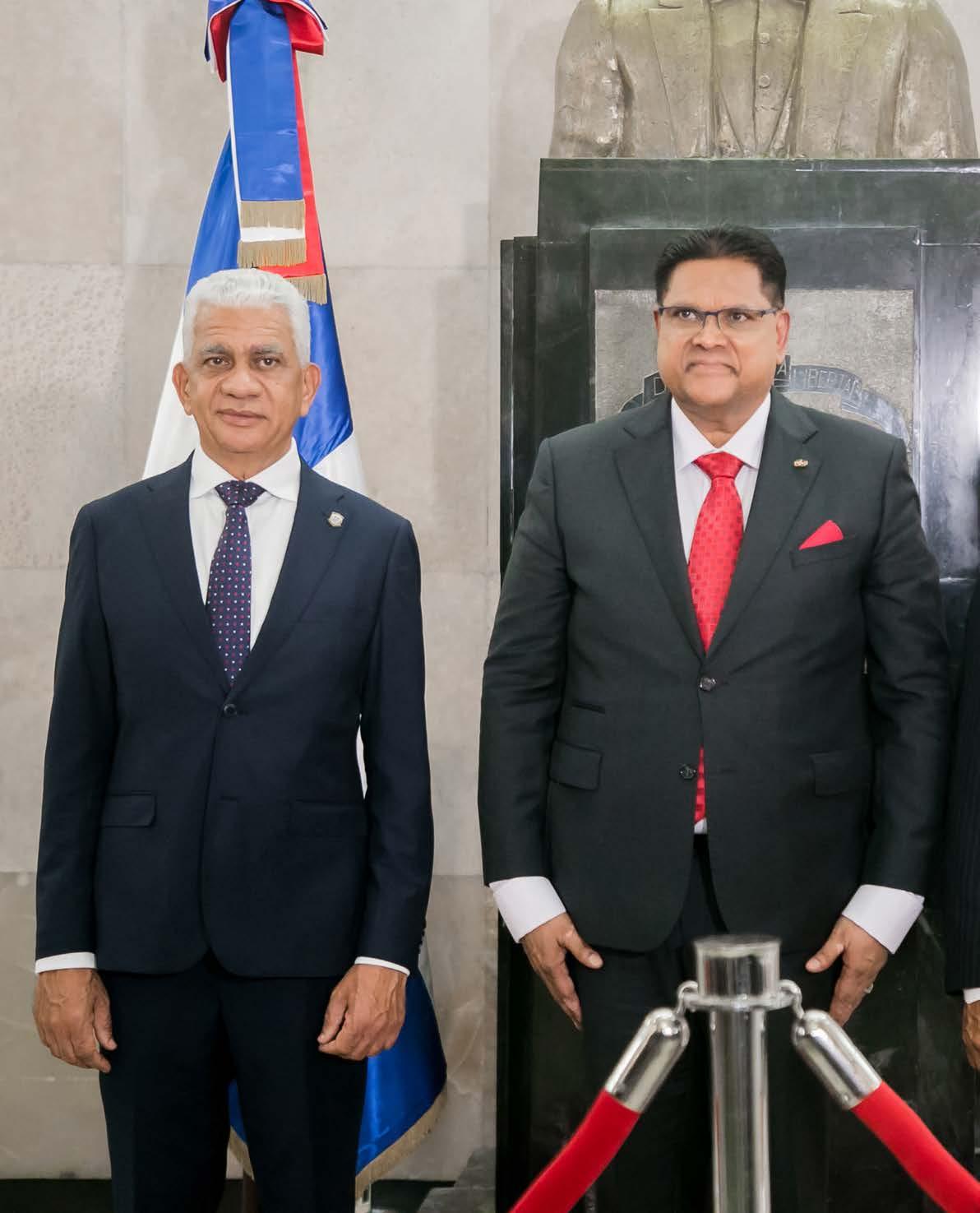 Los presidentes del Senado de la República y de la Cámara de Diputados, Ricardo de los Santos y Alfredo Pacheco, respectivamente, recibieron en una ceremonia solemne al presidente de la República de Surinam, Chandrikapersad «Chan» Santokhi, como parte de su visita oficial al país.