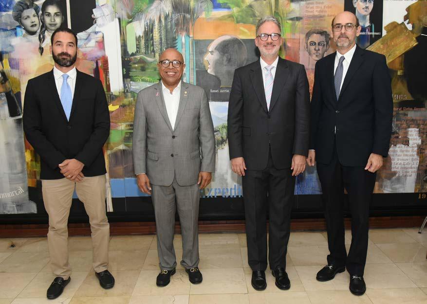 Los presindentes de las cámaras, Alfredo Pacheco y Ricardo de los Santos, junto a Frank Rainieri, fundador del Grupo Puntacana, y presidente de la Fundación Grupo Puntacana, participaron en el almuerzo mensual de la Cámara Americana de Comercio de la República Dominicana (AMCHAMDR).
