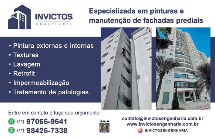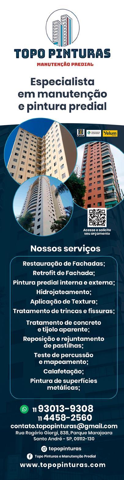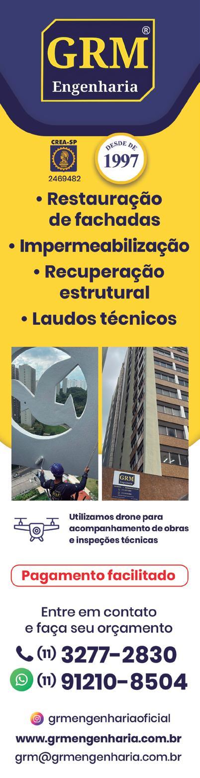 ACIDENTES – O síndico deve garantir que a empresa contratada siga normas de segurança (NR-18, por exemplo), além de verificar previamente a existência de seguro de acidentes do trabalho. Mediante caso de óbito, é necessário notificar as autoridades competentes e colaborar com as investigações, reforçando a segurança no local. "Fachadas bem cuidadas valorizam o patrimônio, previnem infiltrações e promovem mais segurança para todos os moradores."