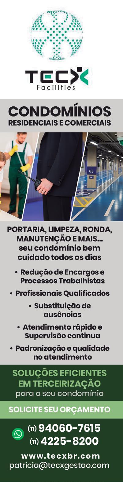 “O aumento do absenteísmo e a falta de mão de obra de profissionais qualificados é um desafio. A terceirização assegura eficiência, economia e tranquilidade para os condôminos, valorizando o condomínio.”