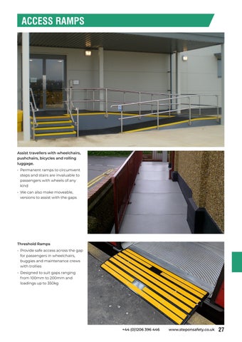 Assist travellers with wheelchairs, pushchairs, bicycles and rolling luggage. • Permanent ramps to circumvent steps and stairs are invaluable to passengers with wheels of any kind • We can also make moveable, versions to assist with the gaps