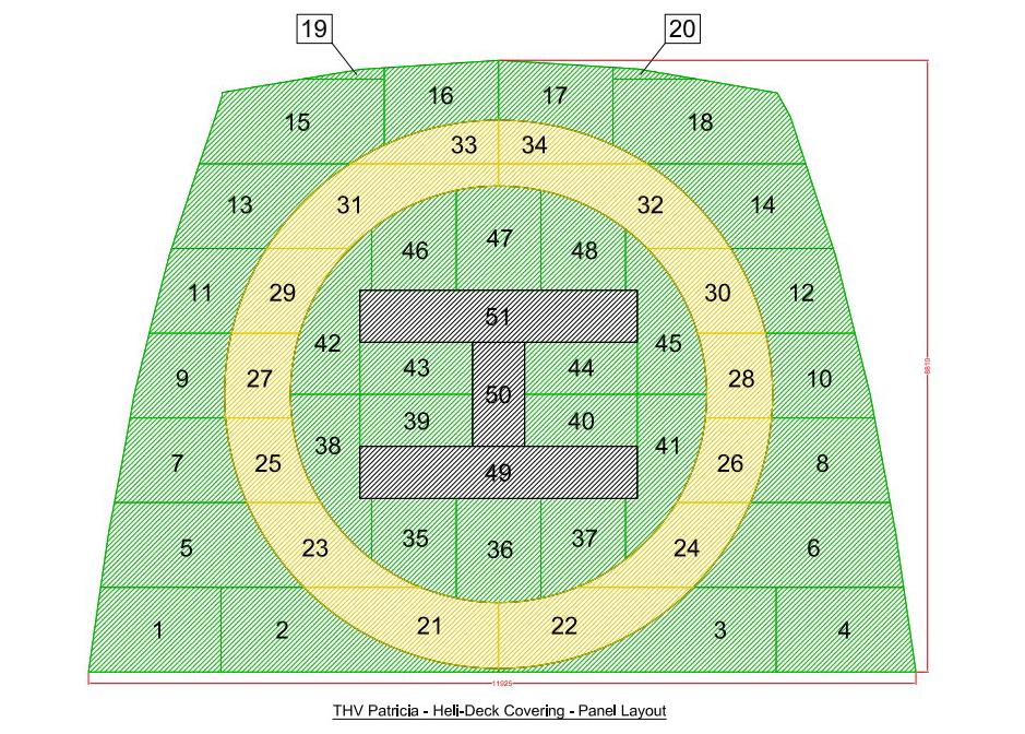 Our QuartzGrip® Anti-Slip Flat Plate can be cut into quite intricate shapes enabling us to build symbols into a surface. Creating a bold H to indicate a helicopter landing pad on an offshore platform or ship’s deck is a fairly simple process. What’s more, the fibreglass sheeting remains non-slip in all weather conditions and is UV stable so won’t fade over time. The material itself is coloured throughout so the design won’t wear off, ensuring safer landings for years.