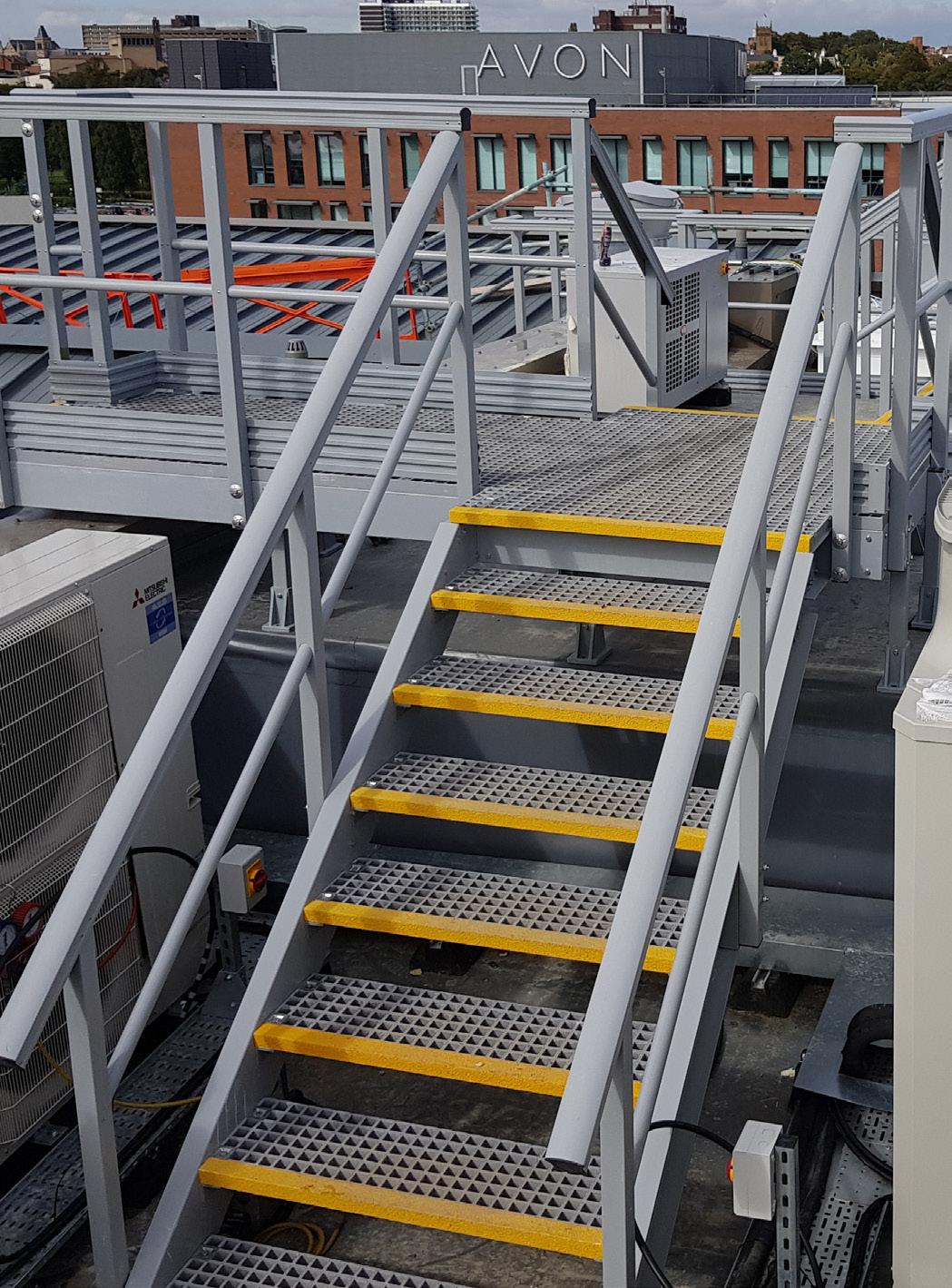 From building a Staircase to reach the roof, to adding Platforms, Gantries and Walkways that smooth the surface allowing maintenance teams to navigate safely, roof-top access can be as simple as adding a Hop Over or as extensive as resurfacing the whole area.