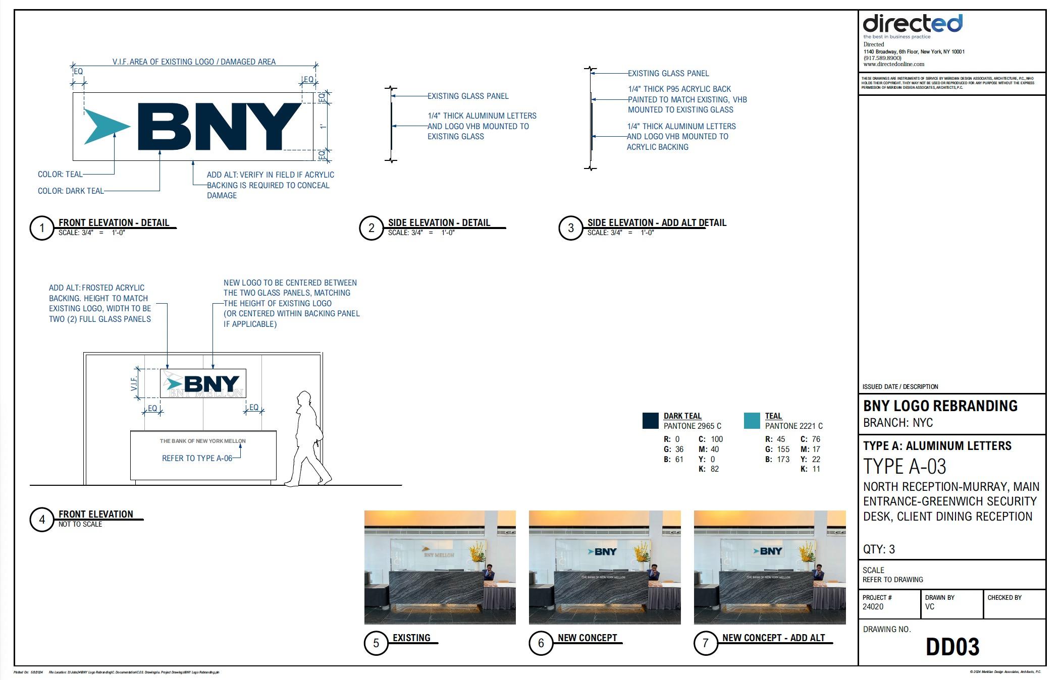 • Designed custom polycarbonate standoff boards with 3M privacy film to cover damage from 15-year-old pin-mounted signage, and applied dimensional letting on top.