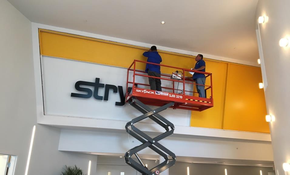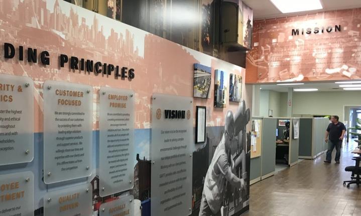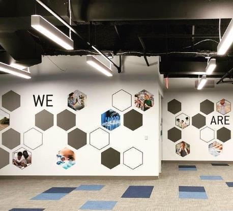 We Blend your visual standards for employee engagement across a suite of vetted services ADA & Architectural Signage, Banners, Commercial & Digital Printing, Distraction Banding, Events, Furniture, Moving & Storage, Painting, Pop-Ups, SEG, Switch Film, Wallpaper & more.