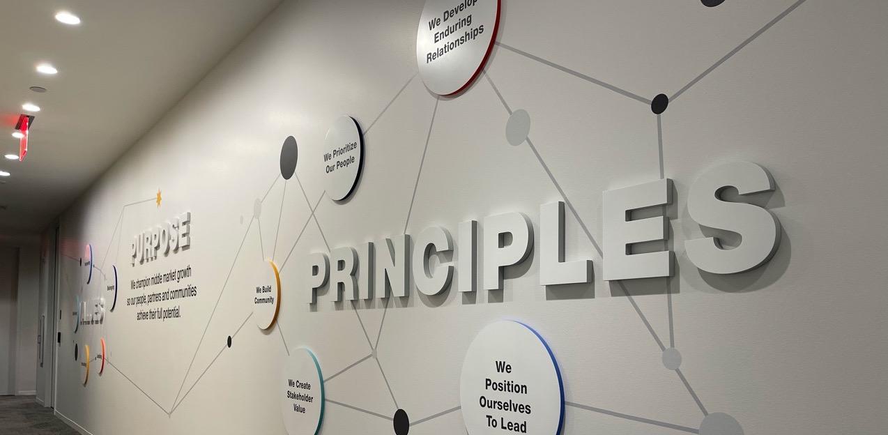 We Blend your visual standards for employee engagement across a suite of vetted services ADA & Architectural Signage, Banners, Commercial & Digital Printing, Distraction Banding, Events, Furniture, Moving & Storage, Painting, Pop-Ups, SEG, Switch Film, Wallpaper & more.