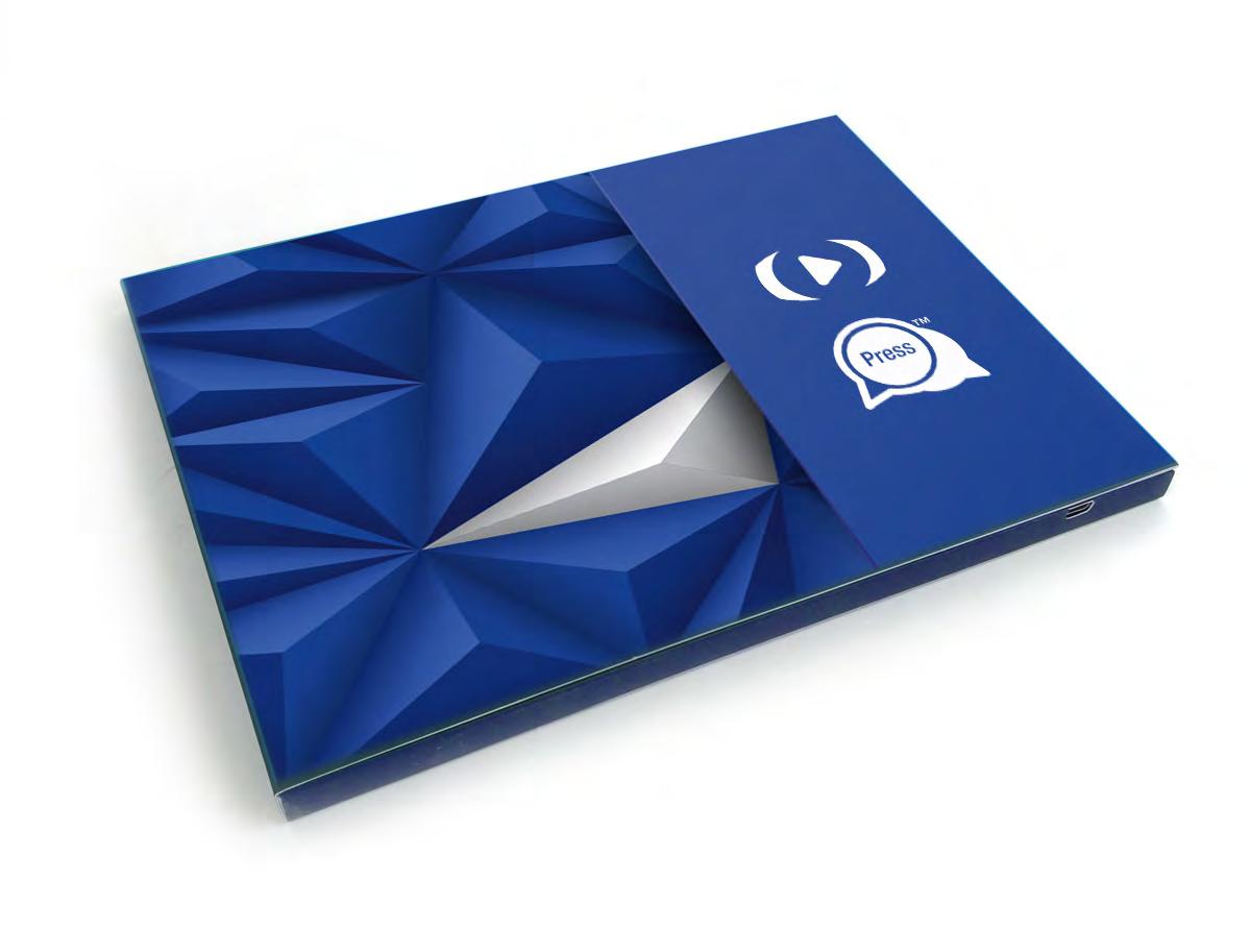 We can package your video book in a bubble bag with a charging cord inside a tuck box. This box can be designed to be used as a handout or can be shipped.