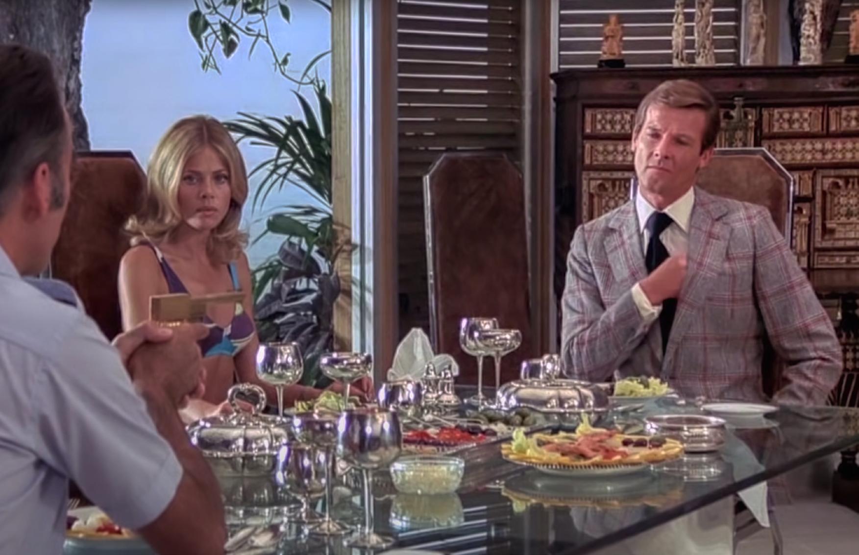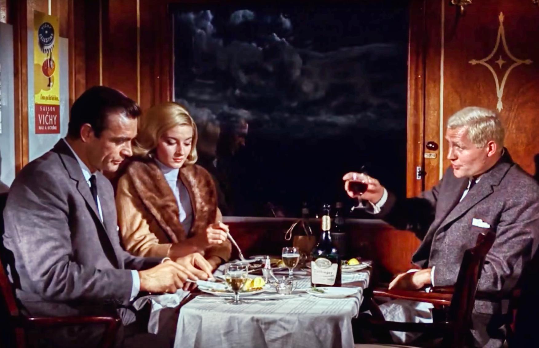 James Bond is a meat-eater. He has a fondness for beef, lamb, and game. In “Goldfinger” he is seen enjoying a curry, and in “From Russia With Love,” a Doner Kebab. At lunch and dinner, he has been known to enjoy roast grouse and pink Champagne, asparagus and hollandaise sauce, steak and French fries, or cold roast beef with potato salad.