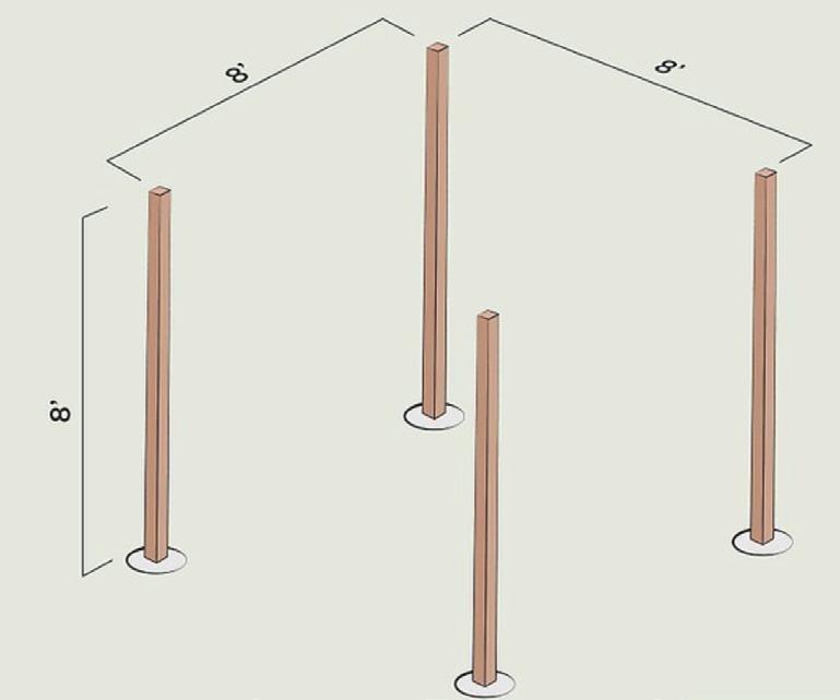 Level the posts in the holes such that 8 feet (2.4 m) is above ground and the inside corners are 8 feet (2.4 m) apart.