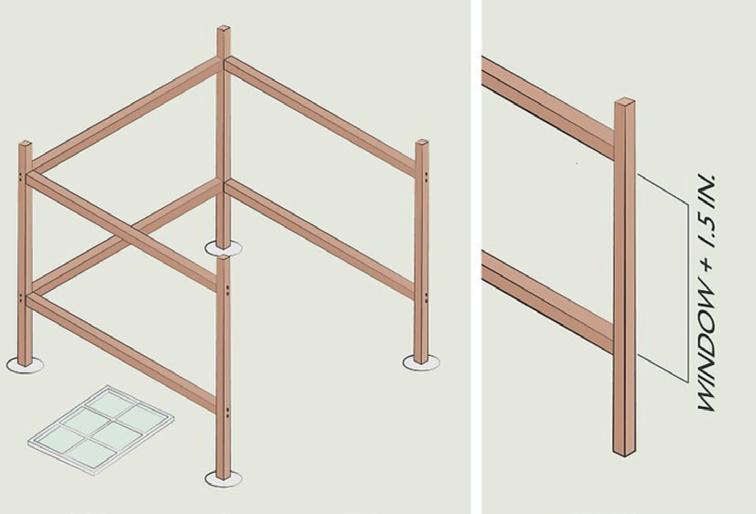 The distance between the 2 beams will be dependent on whether or not you add windows, and what the dimensions of those windows are if you choose to add them. If adding windows, measure their height, add 1.5 inches (3.8 cm), and make this the distance between the bracing beams.