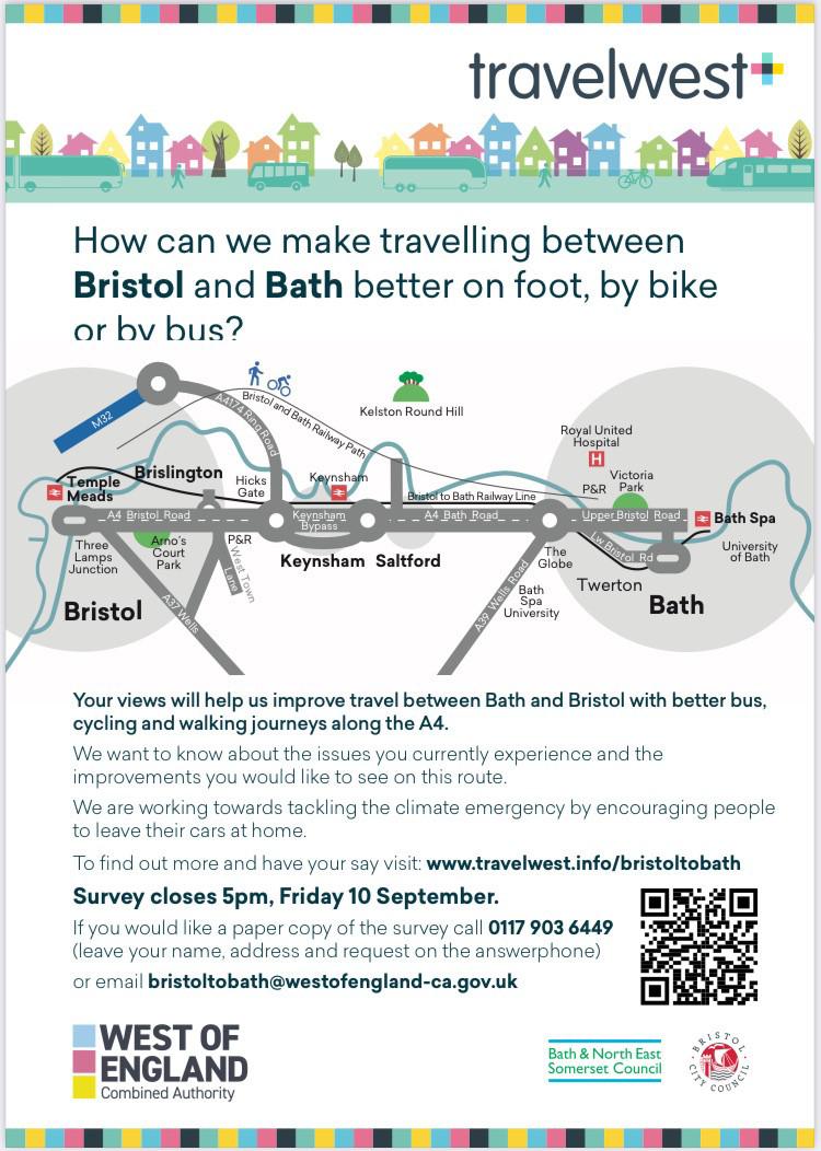 26th July sees the long-awaited launch of the public consultation on the A4 Corridor project. The consultation is being led by the West of England Combined Authority in partnership with Bristol City Council and Bath and North East Somerset Council. The survey can be found on the Travel West website and runs until 10 September.