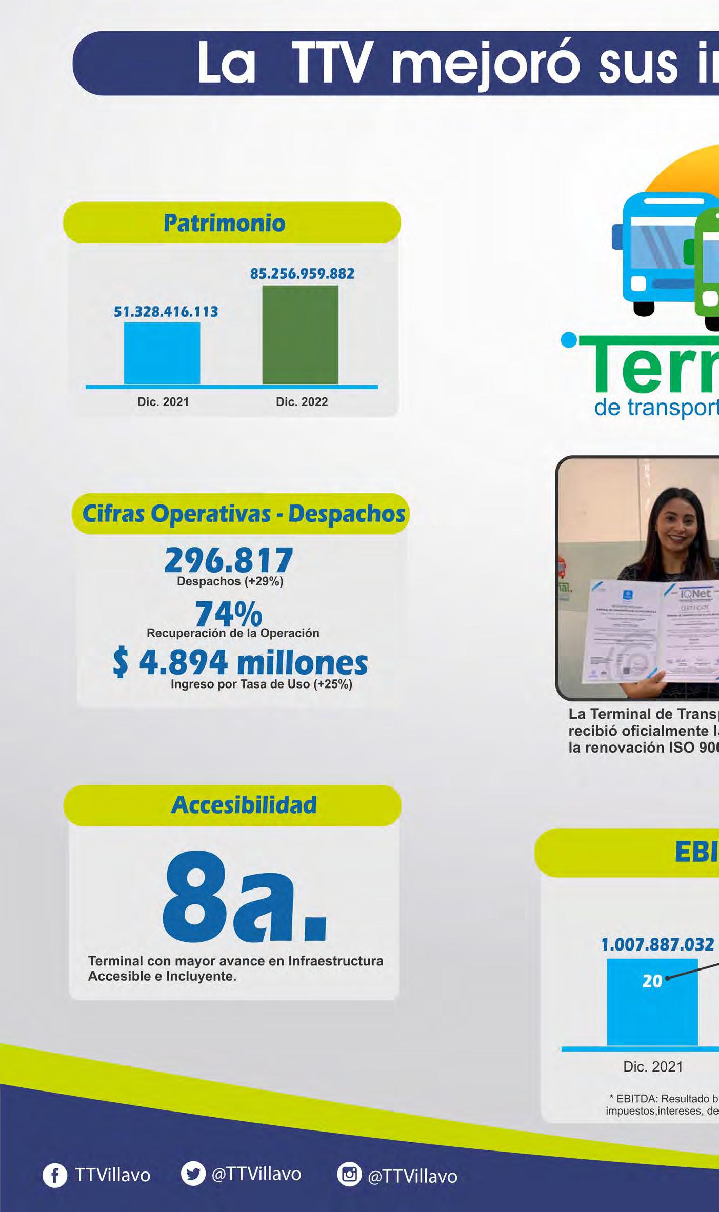 cifras estipuladas por la Corporación Nacional de Terminales de Transporte -Conalter-, la Terminal de Transporte de Villavicencio es el sexto puerto terrestre en movilización de pasajeros de las terminales agremiadas, movilizando en el 2022 más de 2.300.000 de ellos, desde y hacia Villavicencio. Ver cifras en las páginas 6 y 7. /TTV